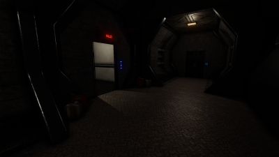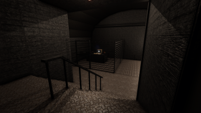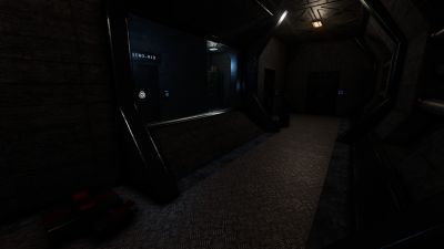 Вход в Камеру Содержания SCP-079 представлен в виде небольшой лестницы, ведущей к двум воротам снаружи Камеры содержания SCP-079.